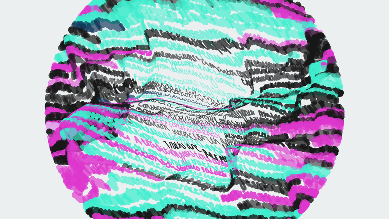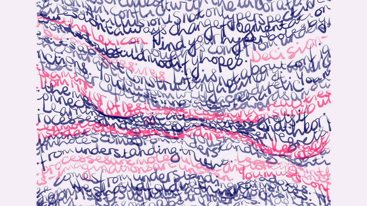 Droits réservés : Sans titre (série : Suite pour l'invisible), Lucie Ferezou (lien externe) et Margaux Janisset (lien externe), risographie bicolore, A3, 2022, tirage limité à 30 exemplaires, numérotés et signés