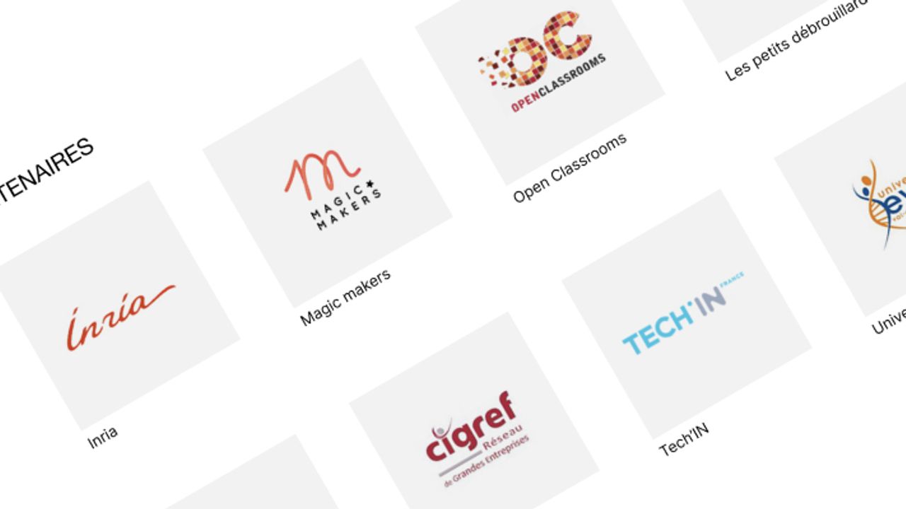 Une liste d'organisations, avec leur logo, leur site et leur nom